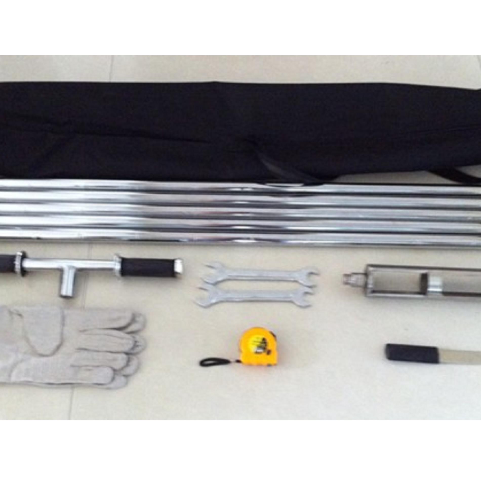 技术参数和配置: 1螺旋钻头,长:30cm 直径:5cm 螺纹连接,一只 2 T型手柄:长35cm,螺纹连接; 一只 3延长杆:长100cm, 螺纹连接, 一根 4刮刀:宽20mm用于刮取土样; 一只 5扳手:19×22mm,用于拆卸、安装采样钻;二只 6手套:手背透气性好; 一副 7钢卷尺:3米; 一只 8便携包:长110cm,用于装上述部件;一只