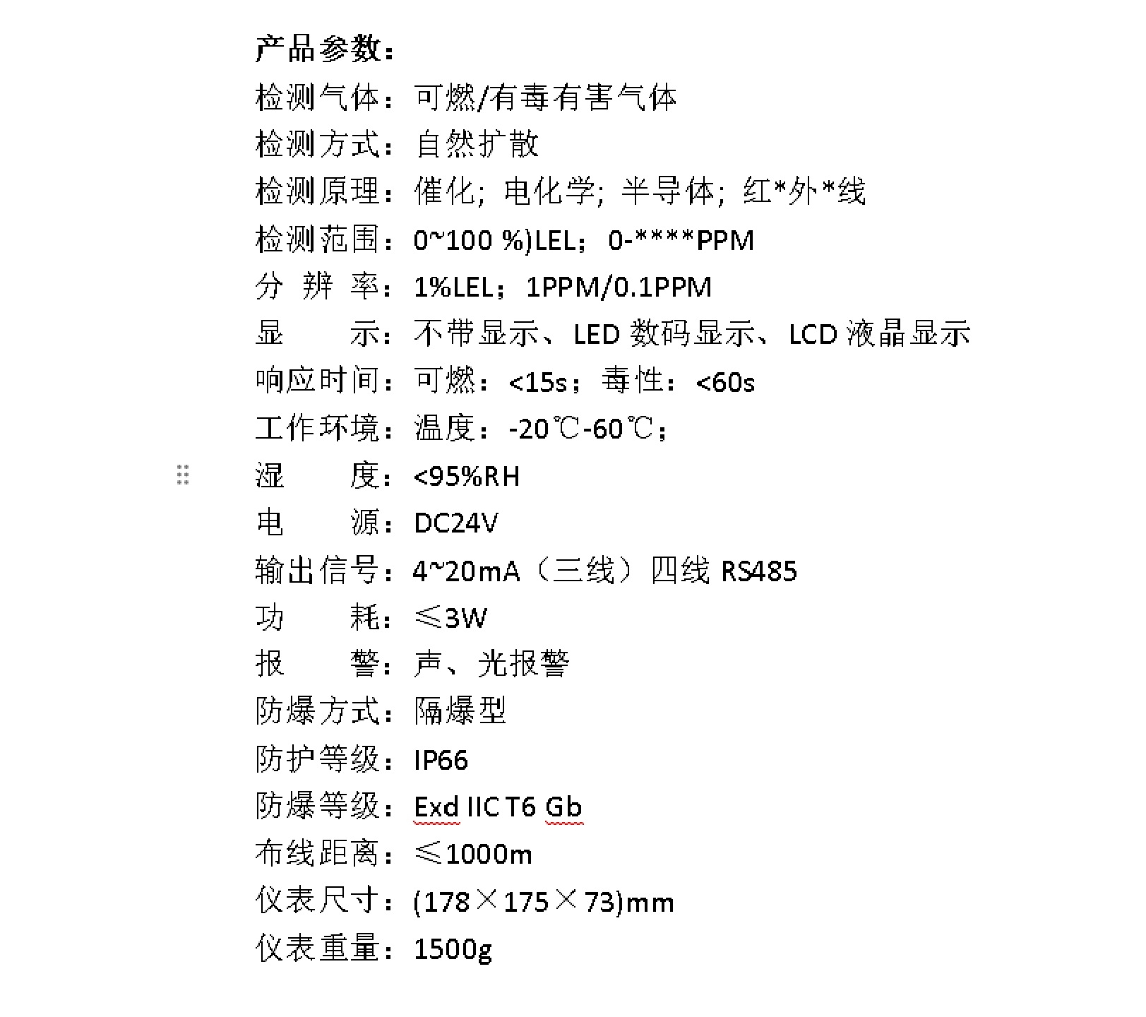 被测气体/测量范围/可选量程/分辨率/响应时间