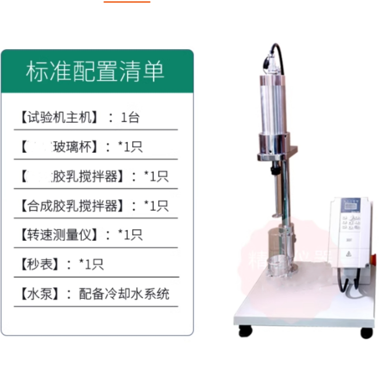 标准配置清单 [试验机主机]:1台[专*用玻璃杯]:*1只胶乳搅拌器]:*1只[合成胶乳搅拌器]:*1只[转速测量仪]:*1只 [秒表]:*1只 [水泵]:配备冷却水系统