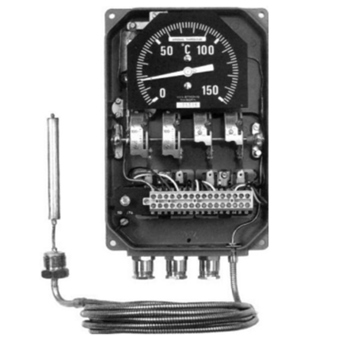 用途 : AKM35系列绕组温度指示控制器是为油浸式电力变压器而设计的,采用“热模拟" 方法来测量变压器绕组温度的测温仪表。 它在制造时,既要求仪表在控制油温时需是长SHOU命的,无的故障及重负荷的。它适 合安装在室外变压器的上面,为全-天候的,不论是炎热天气还是寒冷天气,不损坏。 所有部件均由不锈蚀或表面经过防腐蚀处理的材料制成机械测量系统确保了其测 量精度。 技术数据: 外壳:由铸铝制成,表面喷塑配以GAO透明度与GAO强度的有JI玻璃窗外壳散热性能好; 温度传感系统:测温探头采用膨胀型,内充有感温介质足以适应温度变化; 毛细管:采用铜镍合金制造,配有不锈钢软管作为护套; 防护等JI:Ip54; 环境温度: -40℃~+70℃; 测量范围:0~150℃;-20~130℃等 测量精度:±3℃; 开关:2~5个微动开关,每个开关均配有各自的温度盘用于设置触点动作温度值; 开关容量:AC.250V 15A,DC.220V 0.3A; 开关动作范围:0~150℃;-20~130℃等 开关精度:4℃; 开关回程差:10℃~14℃;