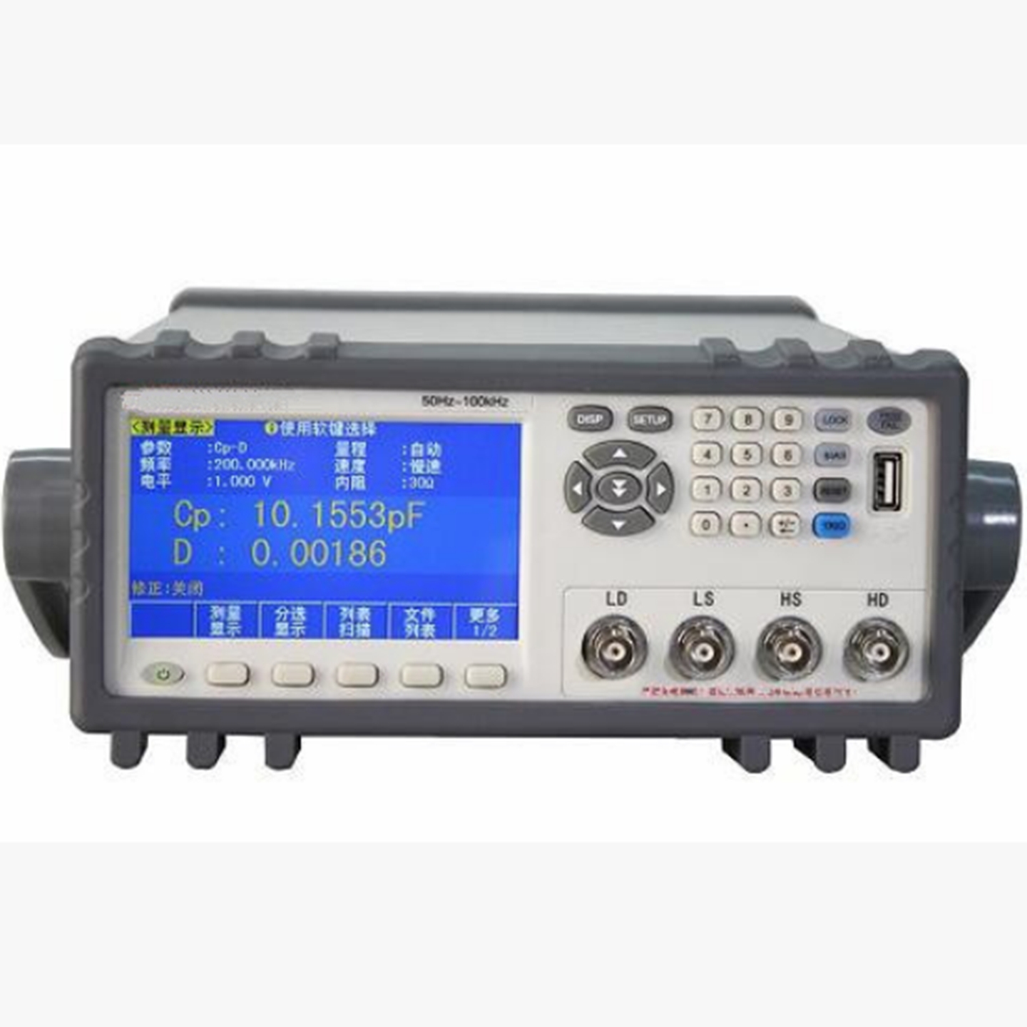 测试频率50Hz - 100kHz, 0. 01Hz步进